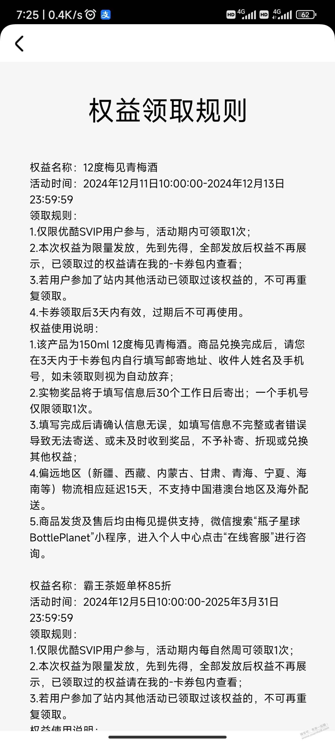 优酷svip-会员-我的权益,仅限2024年11-13号。