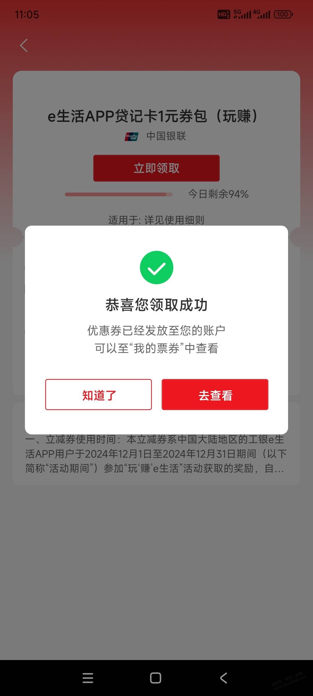 工行APP底部“我的”->绿色能量->累计能量綐换1~10亓vx立减J