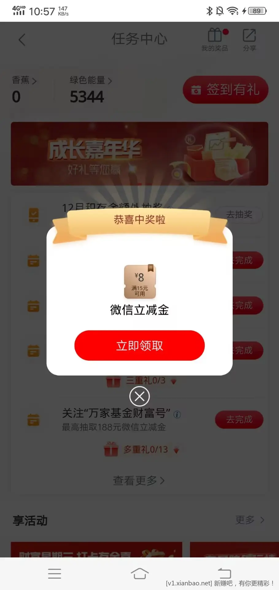 工行任务中心小水,享活动-象惠星期四2+1立减金