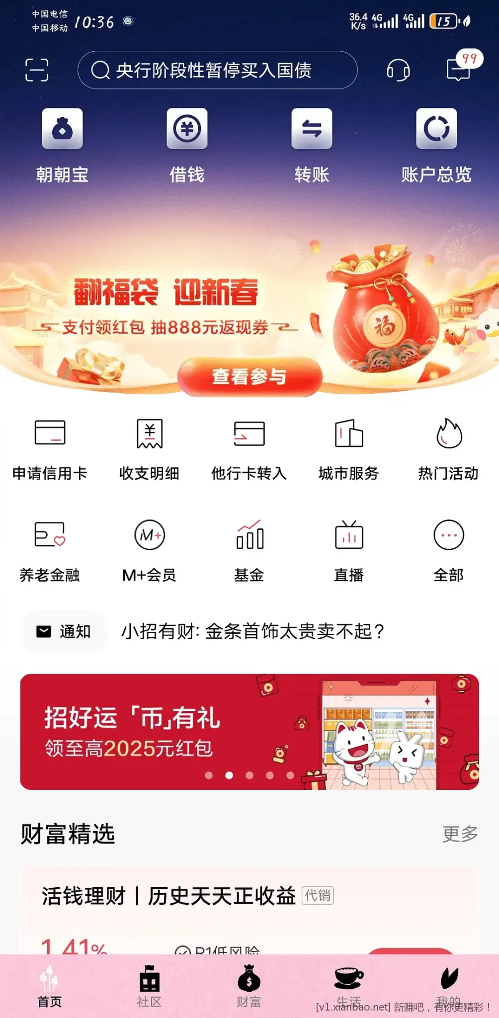 招行黄金红包或还款券