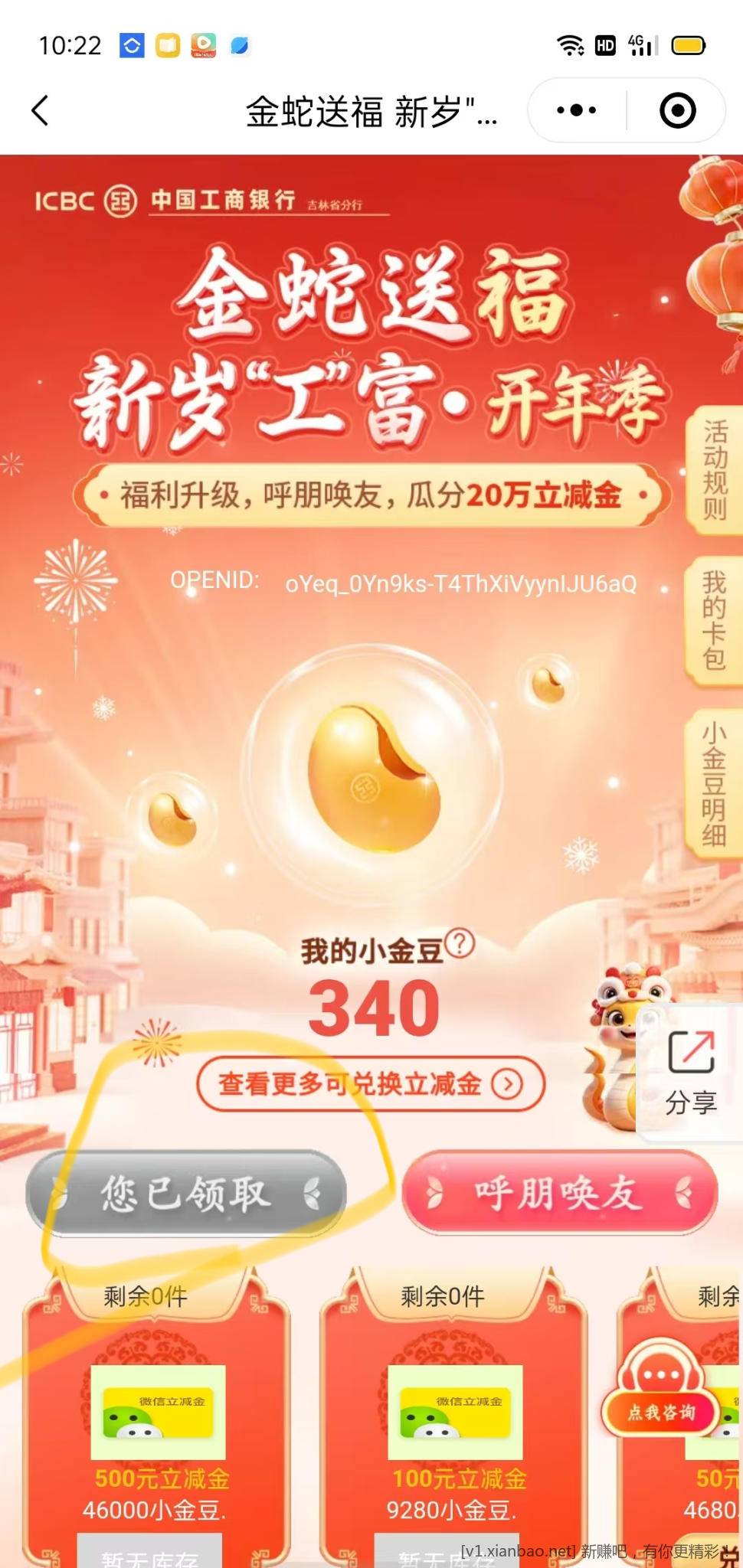 领取金豆兑换立减金 1 到500 面额