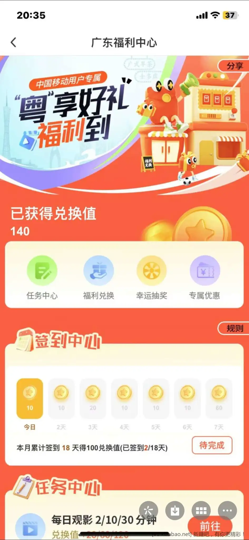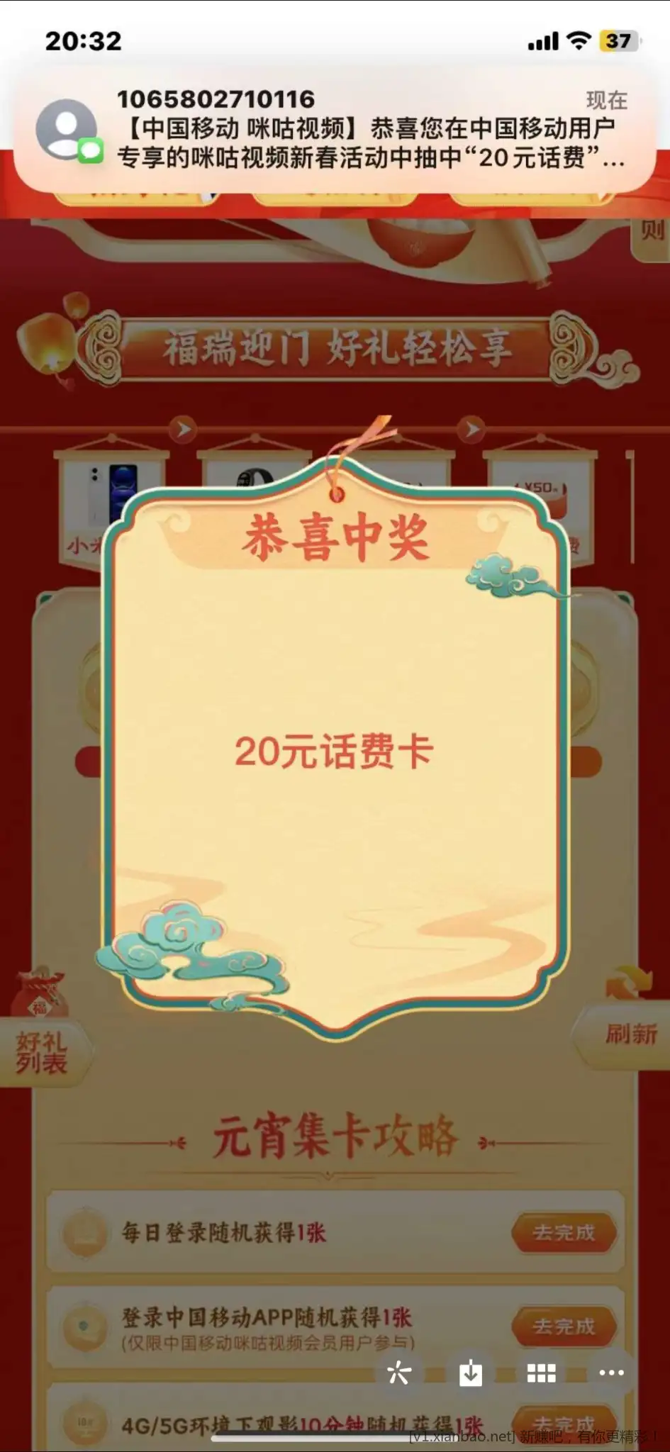 年都过完了才看见这个活动,咪咕视频首页找到抢福利,第一个活动,有个幸运抽奖。中不中奖看运气
