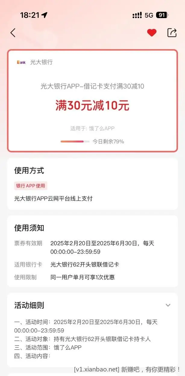- 饿了么光大借记卡30-10