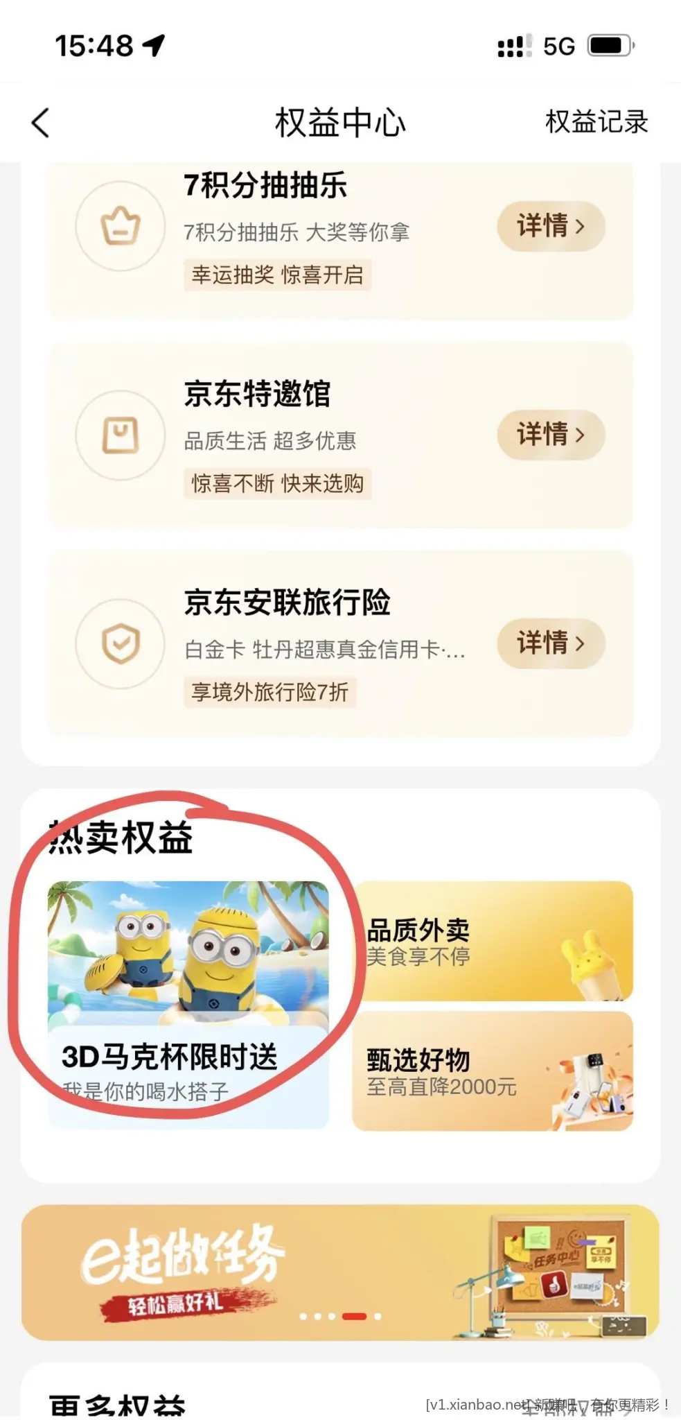 工行e生活app, 进去“我的”,然后点“我的权益”,往下拉就可以看到。