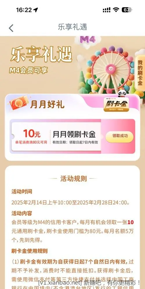 【权益提醒】您是工银xing/用卡客户成长体系会员,可登录“工银e生活App—我的—权益中心—工银爱享礼”领取权益。编辑短信“xing/用卡会员”回复至95588了解权益。如已领取,请忽略。回复TDXS#EFBL退订。【工商银行】