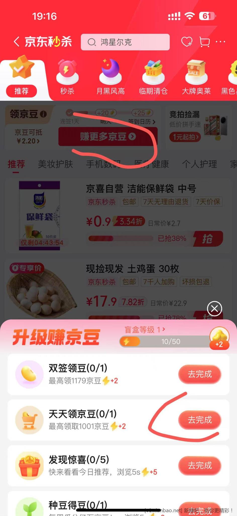 4?点击天天领京豆进去跳转到京东健康app领1001豆