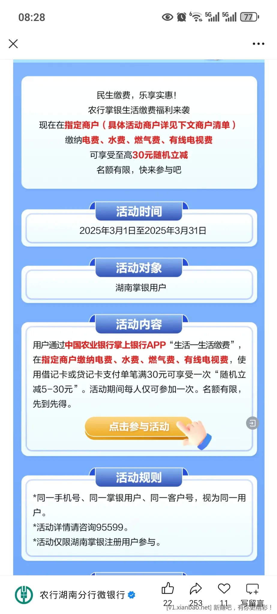 农行湖南热门活动体验好礼有个网捷贷申请有礼10元