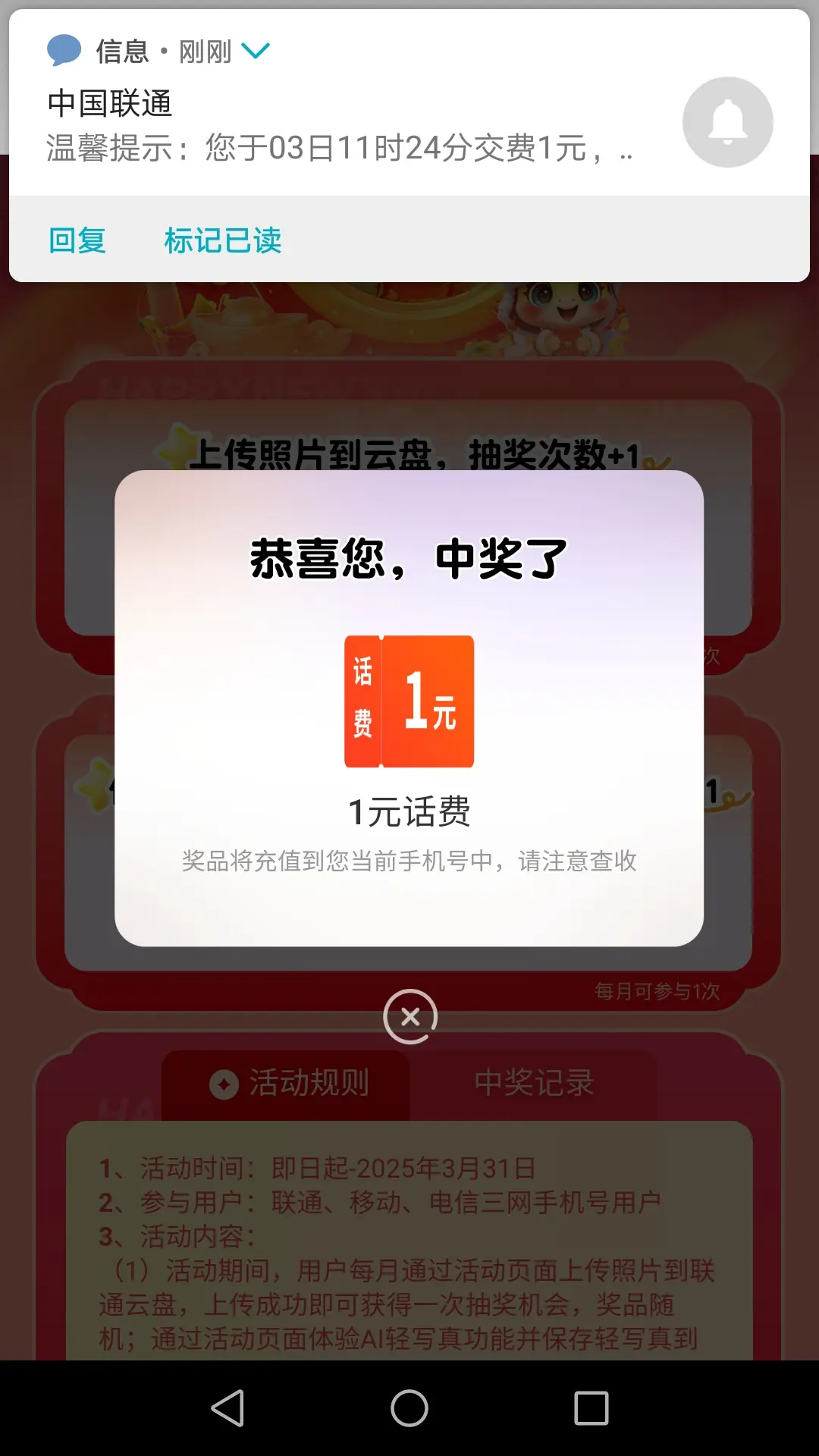 中国联通app-我的-钱包试试大概率抽中100-5生活缴费券