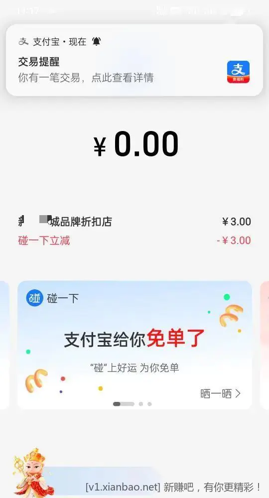 支付宝首页碰一碰2元左右支付红包,今天有效