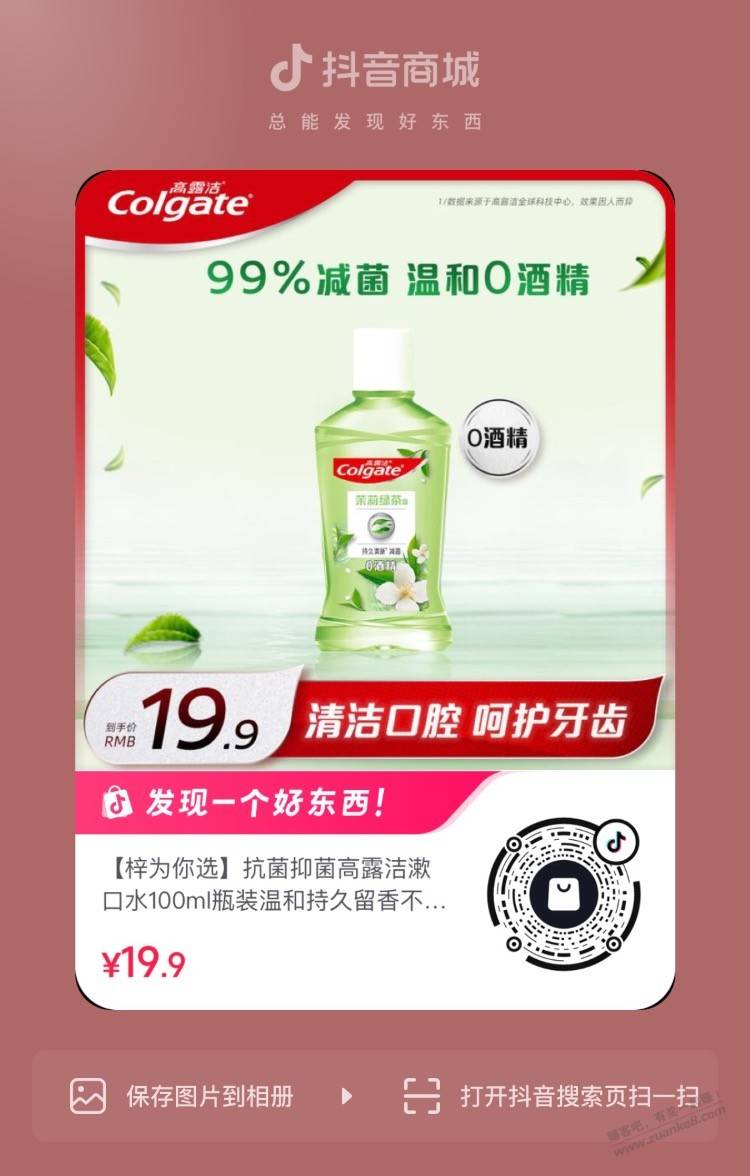 高露洁涑口水1元