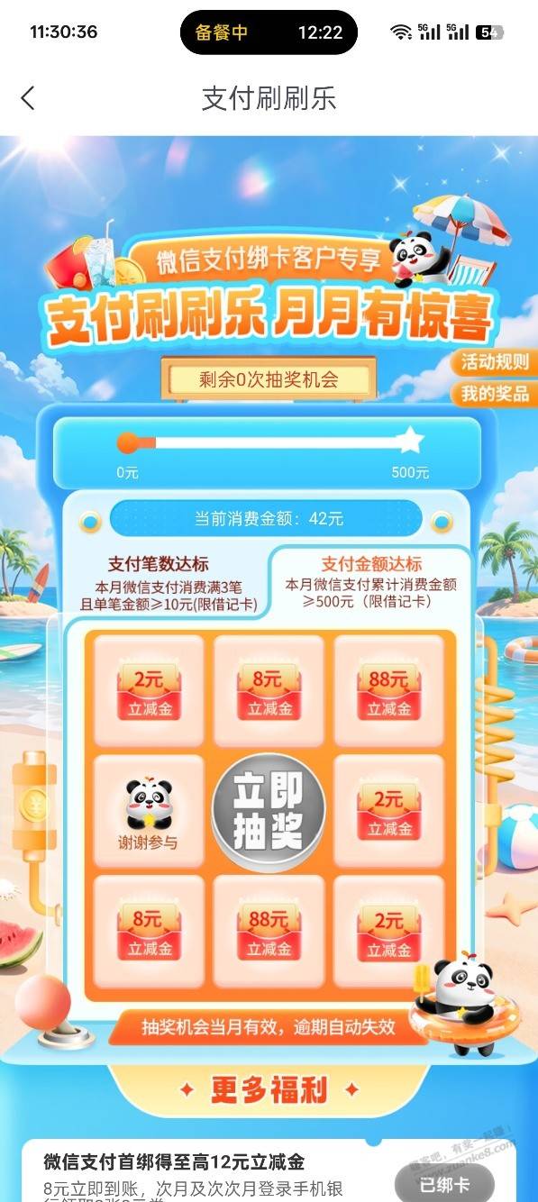 直接转入零钱通10,3次,即可完成任务。然后去活动专区,支付刷刷乐,抽奖。刚中,自测