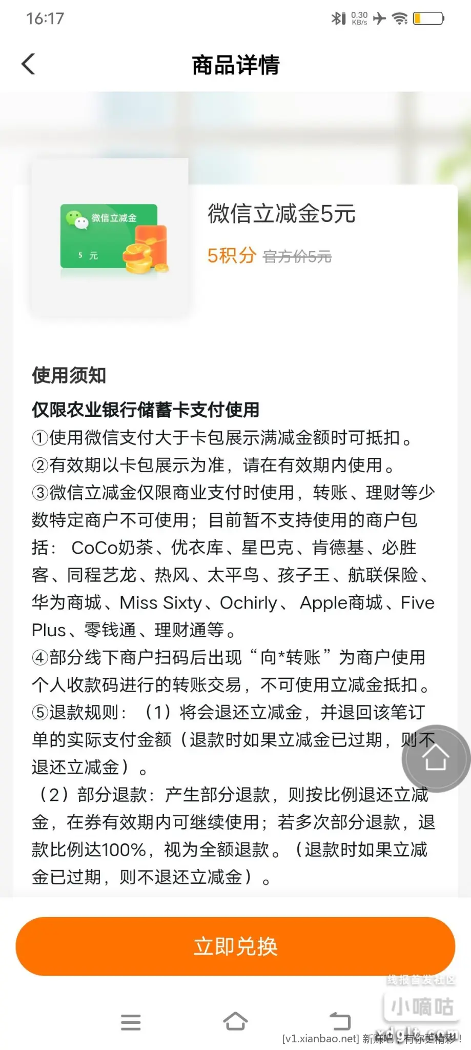 之前广东佛山答题还有5积分没兑换的去微信立减金补货了。