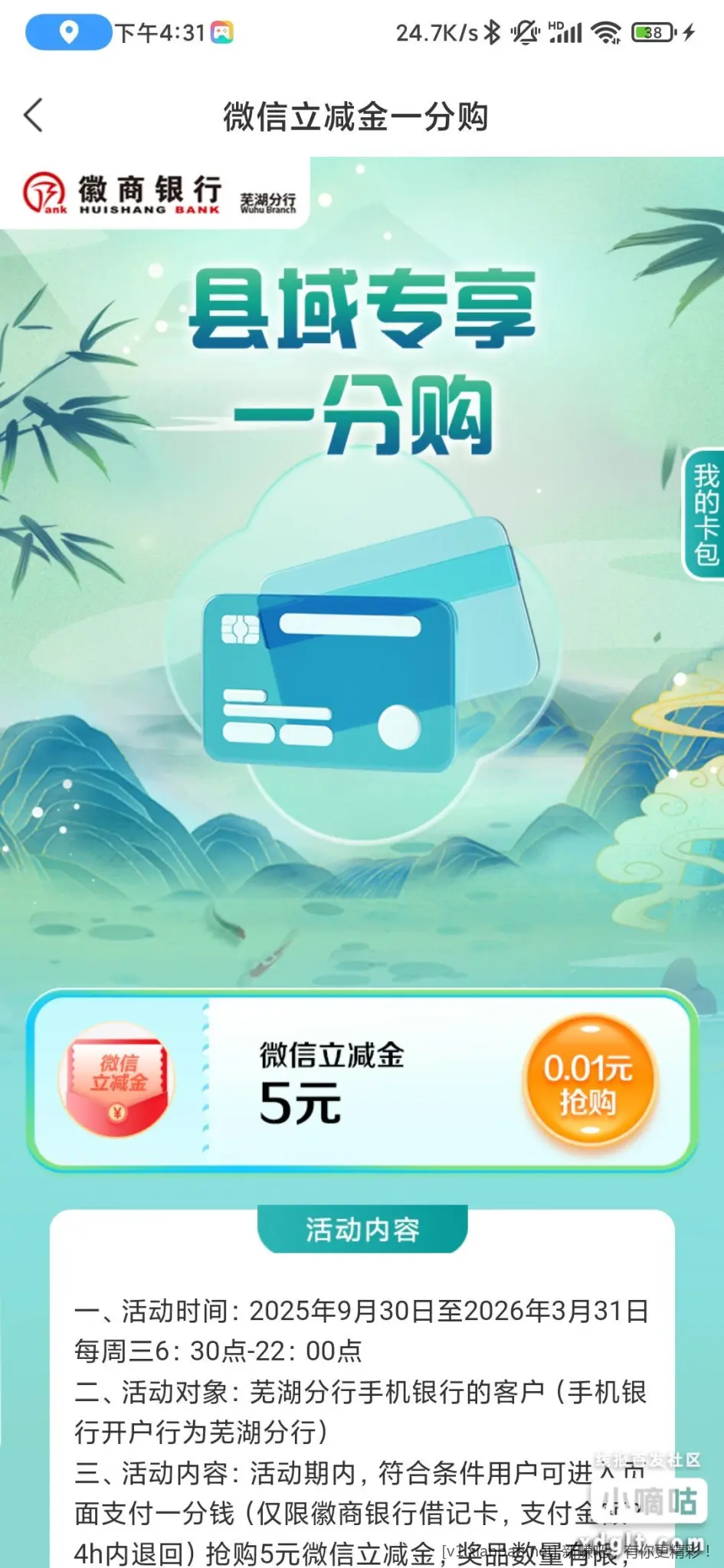 徽商银行消息中心支付一元抽立减金,每天库存有限先到先得