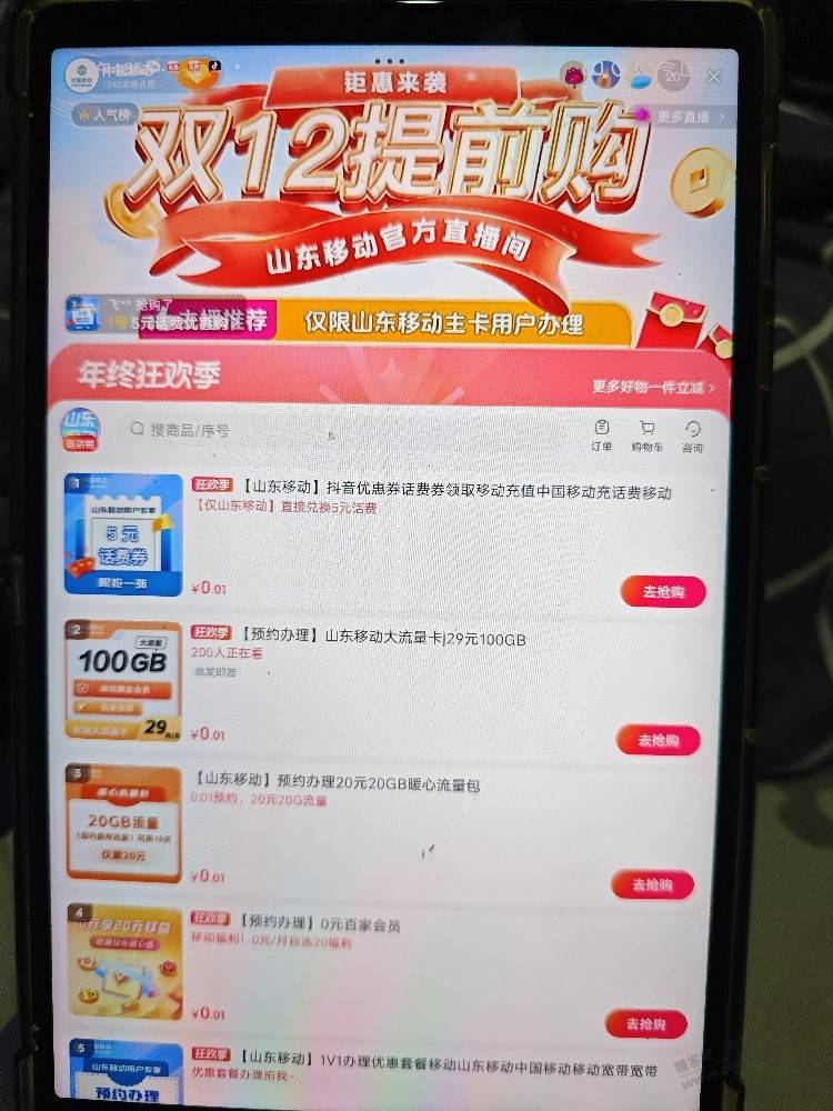 抖音、今日头条等搜官方直播间,刚撸到的,限山东移动主卡