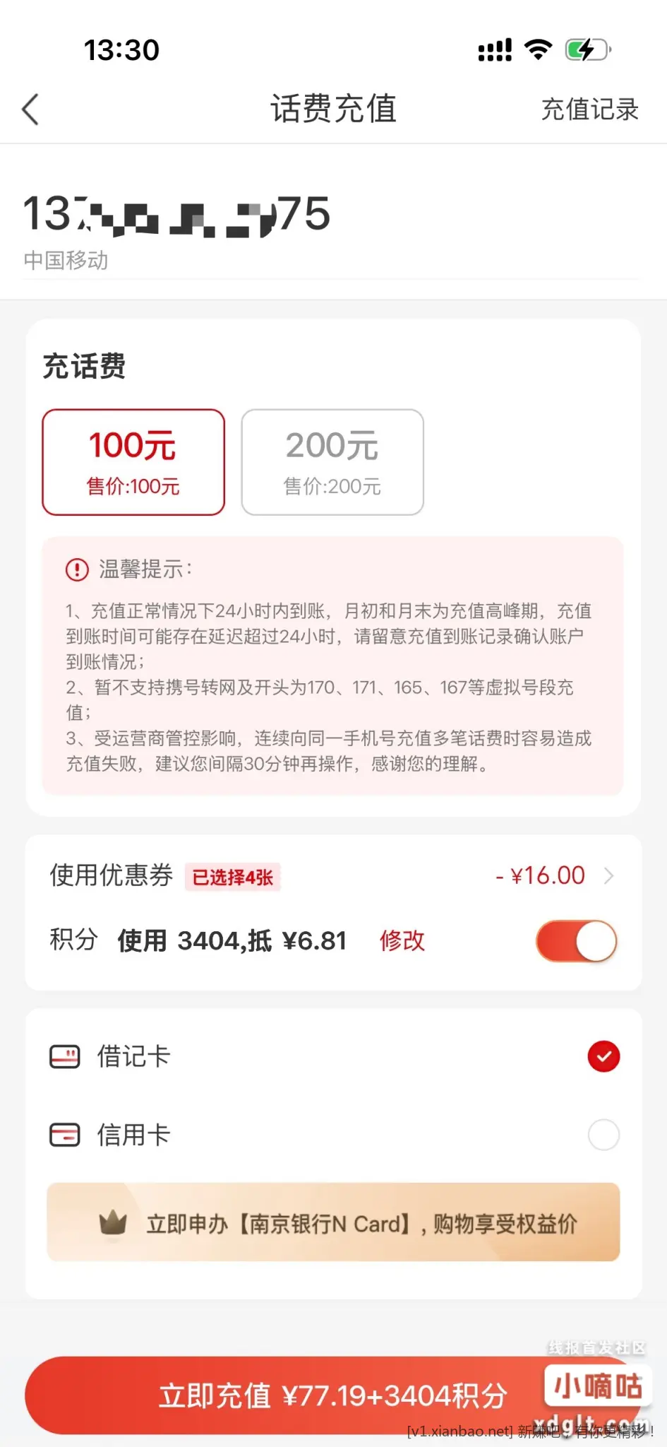 南京銀絎领卷充话费自用划算可叠加积分用去接单充也可以实测五分钟内到