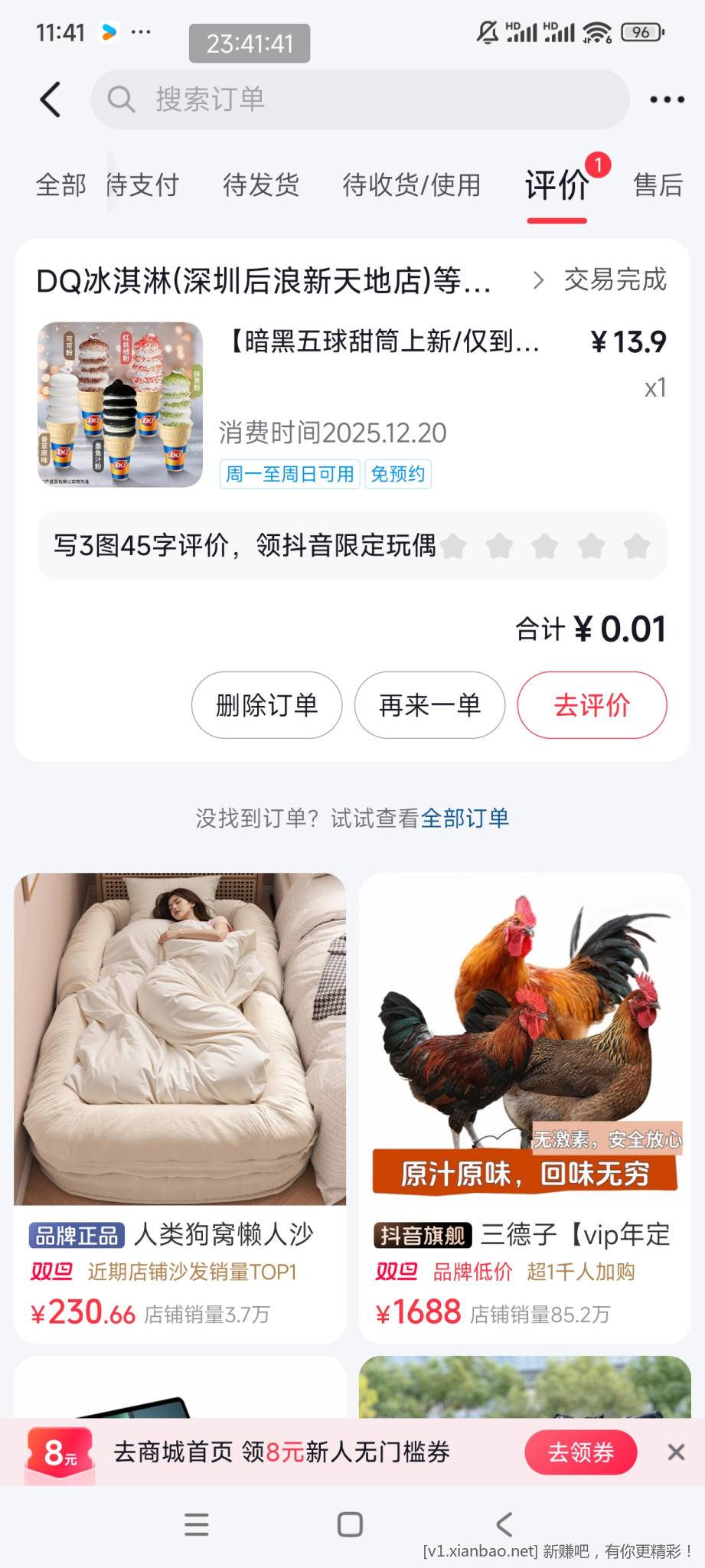 抖音团购买1分钱的DQ冰淇淋挂咸鱼卖8-9元