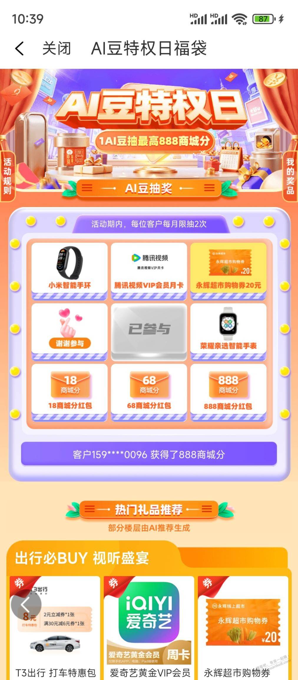 和包-积分商城-横幅ai豆特权日-888,有效期1.4号,下月换话费