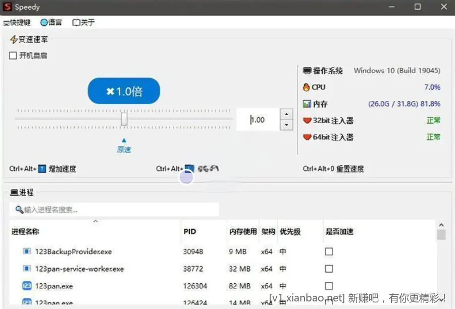 勾选游戏进程,在 OpenSpeedy 界面中调整速度倍率