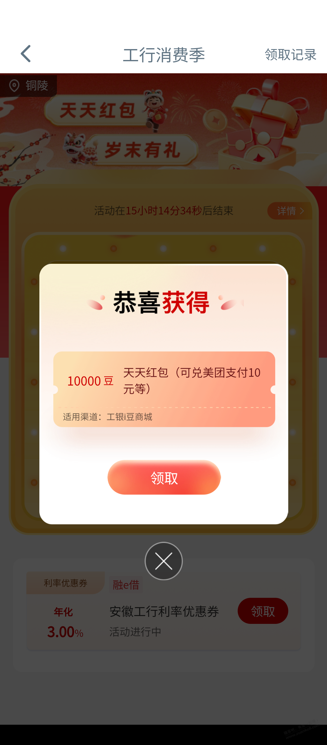工行消费季有水,刚中10000豆