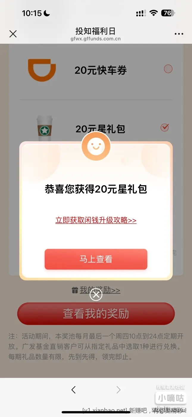 支付宝广发基金财富号粉丝中心加自选领红包