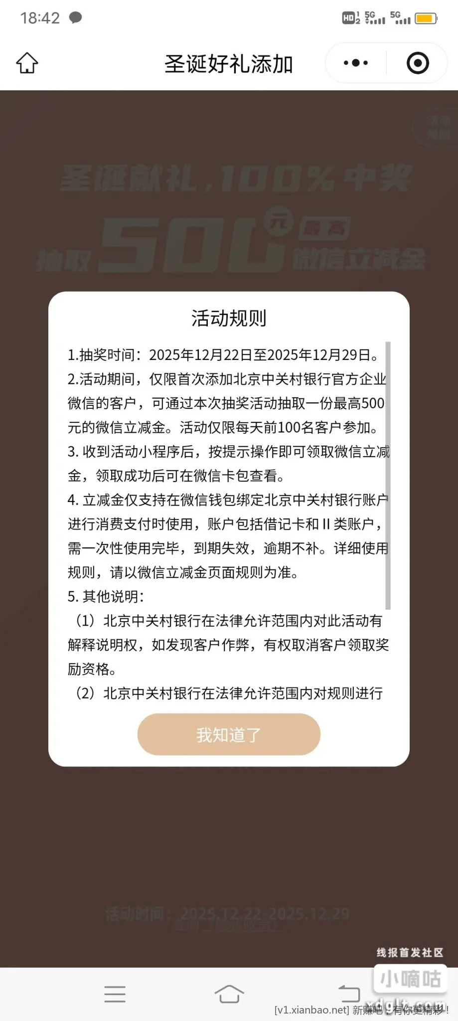 中关村银行,开过电子账户的,加过企业微信的,删除了,过了 12点,每个微有2元立减金,多微多做,不能让夜猫子吃独食。