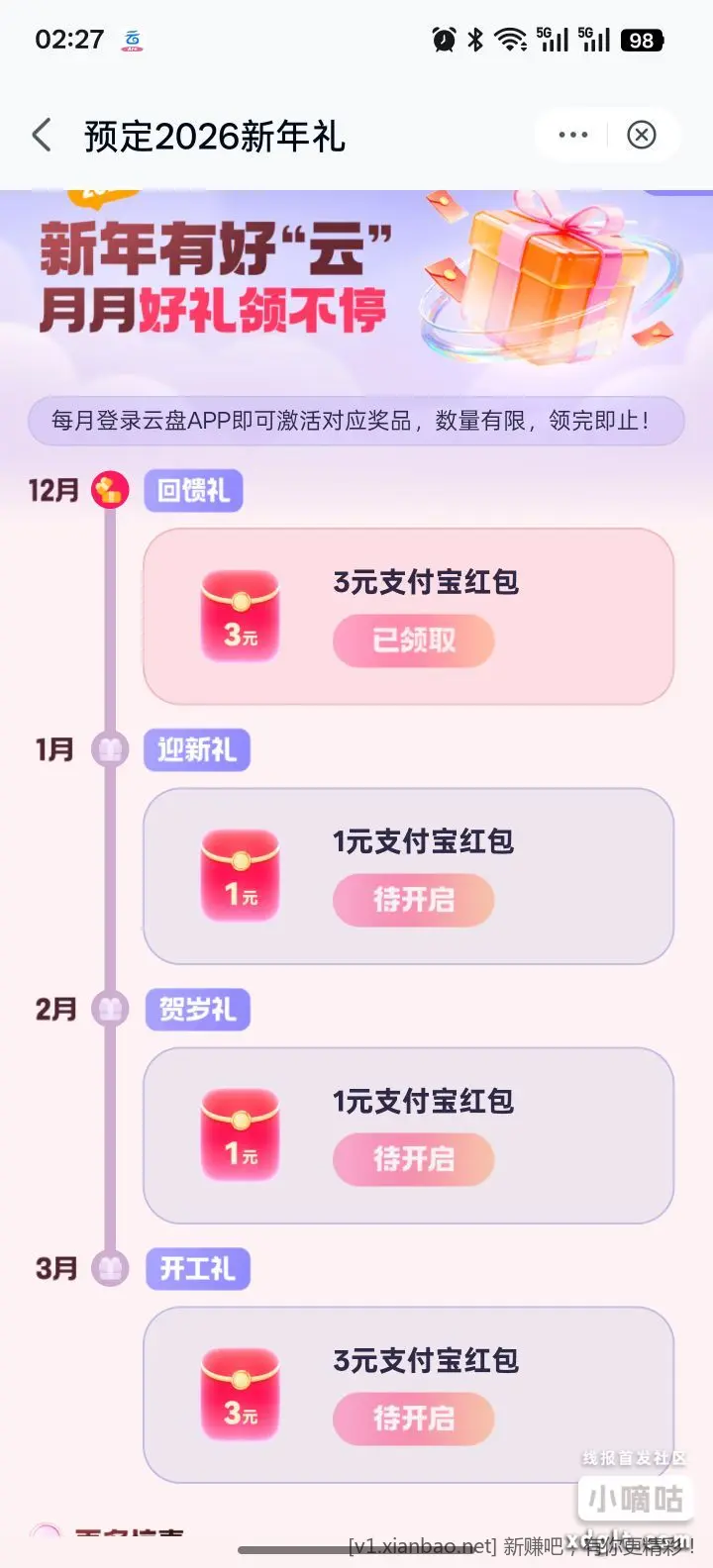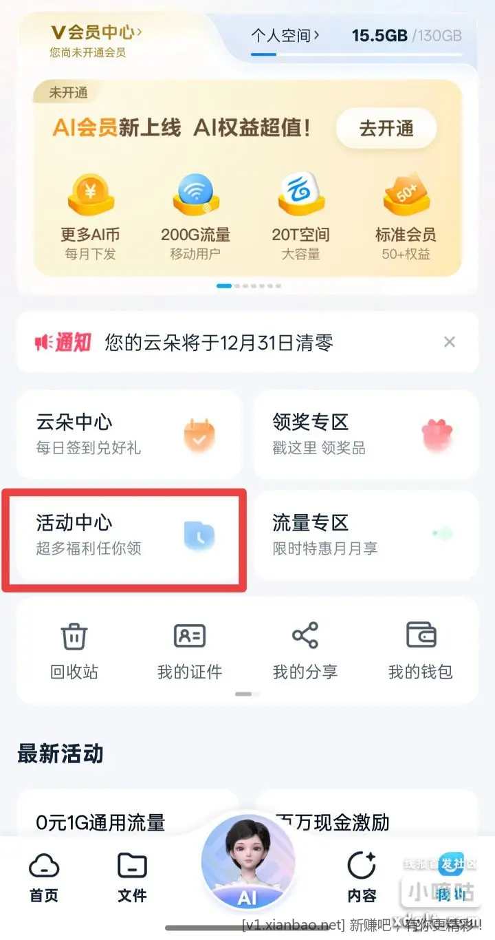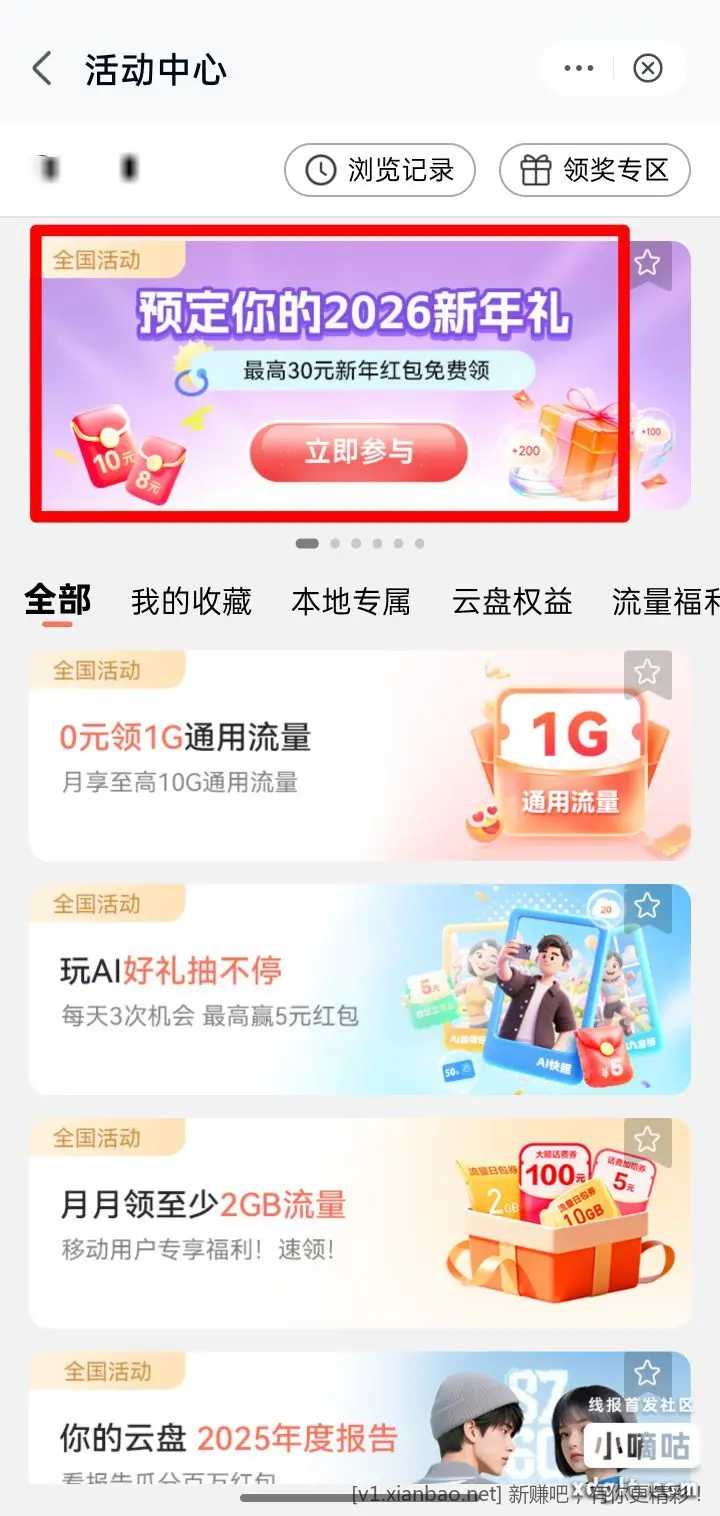 移动云盘 8元立减金 我的??活动中心??预定2026新年礼