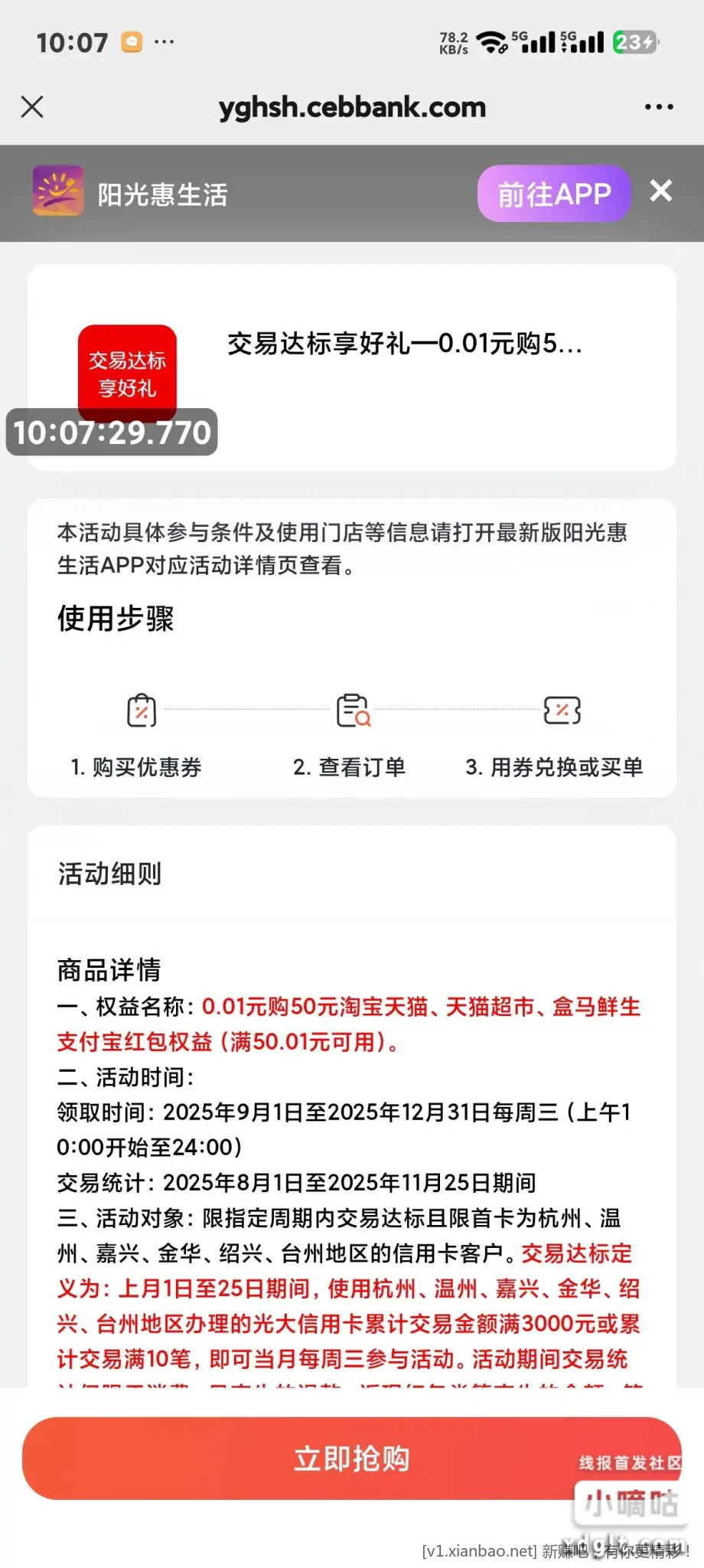仅限浙江光大xyk 浙江光大xyk达标可0.01购50大毛https://yghsh.cebbank.com/static/coupon/batch/share/new/503682.html