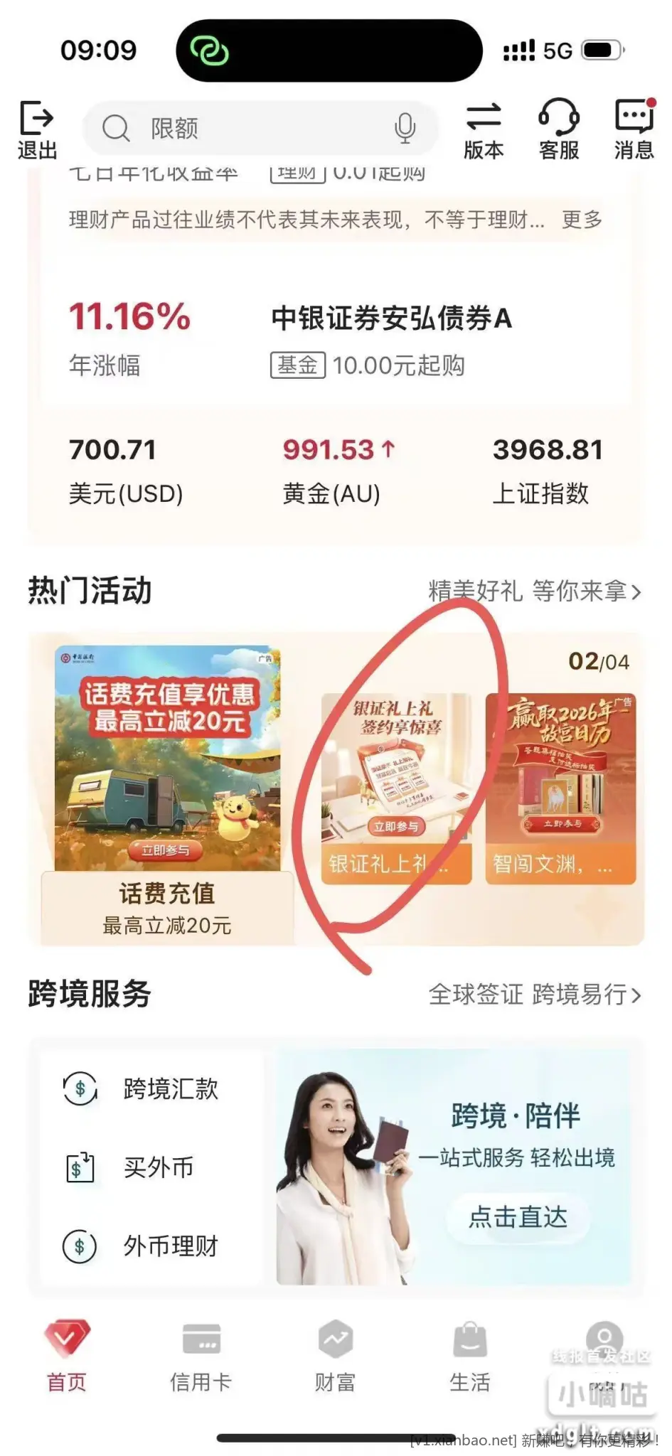 湖北中行-生活-金喜专区右边俩活动抽立减金