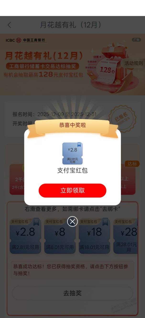 工行12月月花越有礼抽奖
