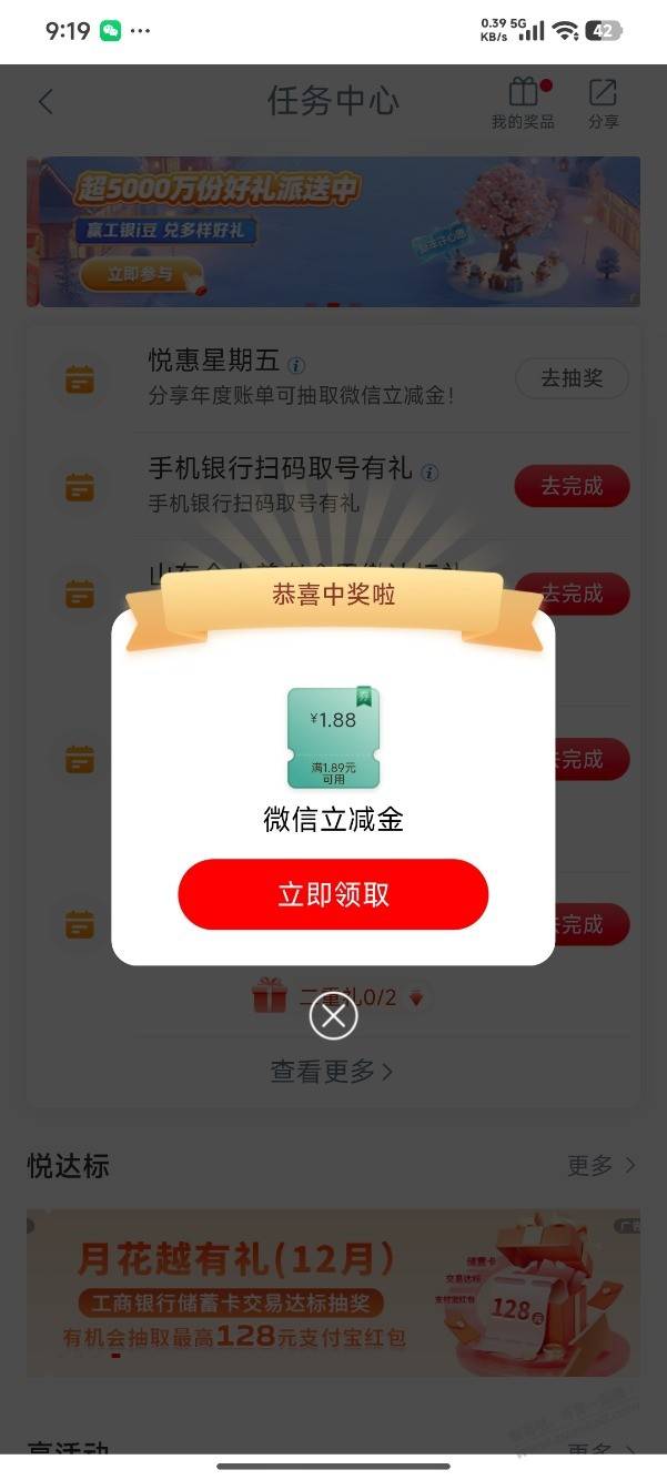 - 工.行-任wu中心普惠三重礼第一和第二都有立减jin自测哈