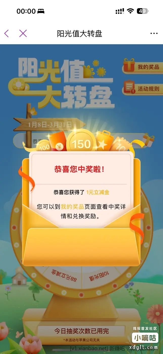光大银行阳光值转盘有水:光大app我的-阳光值-天天兑,转盘抽