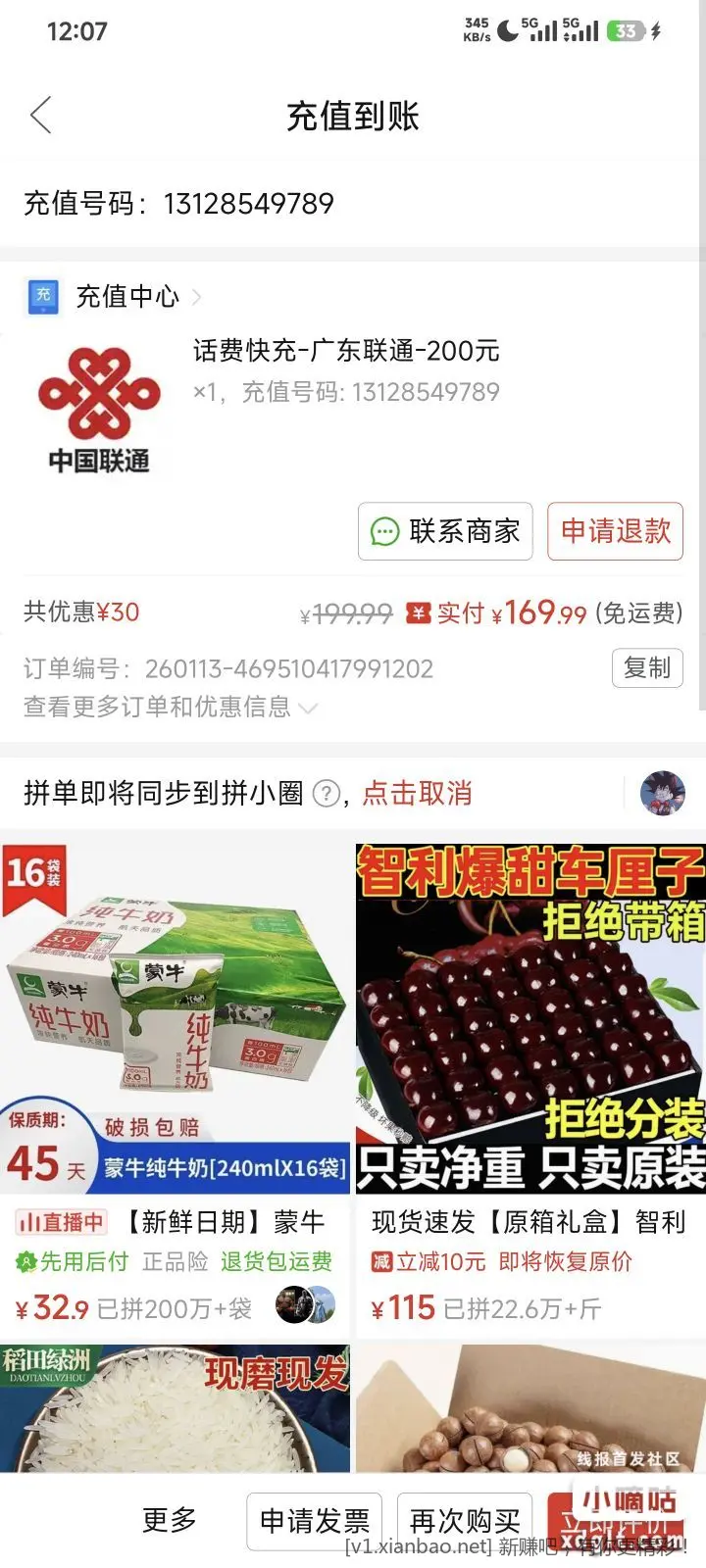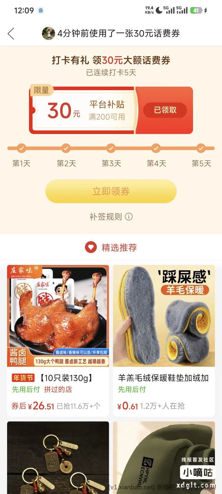 拼多多签到五天拿200-30话费券