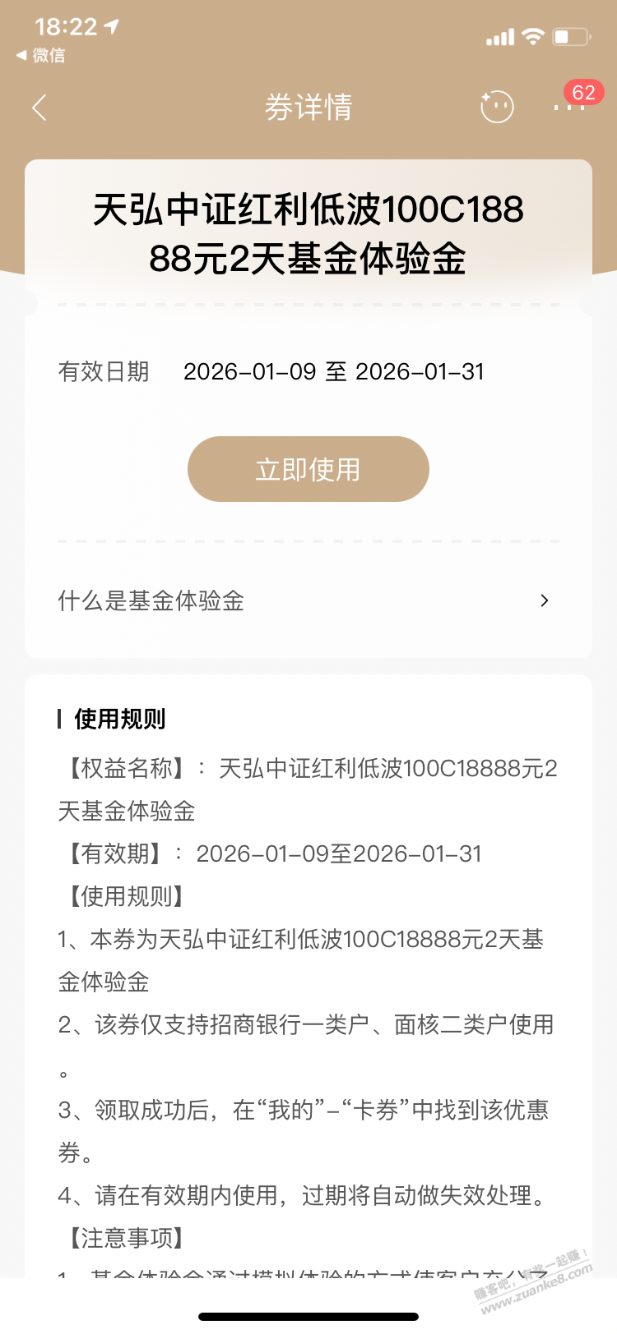 【招商银行】基金体验金18888元~