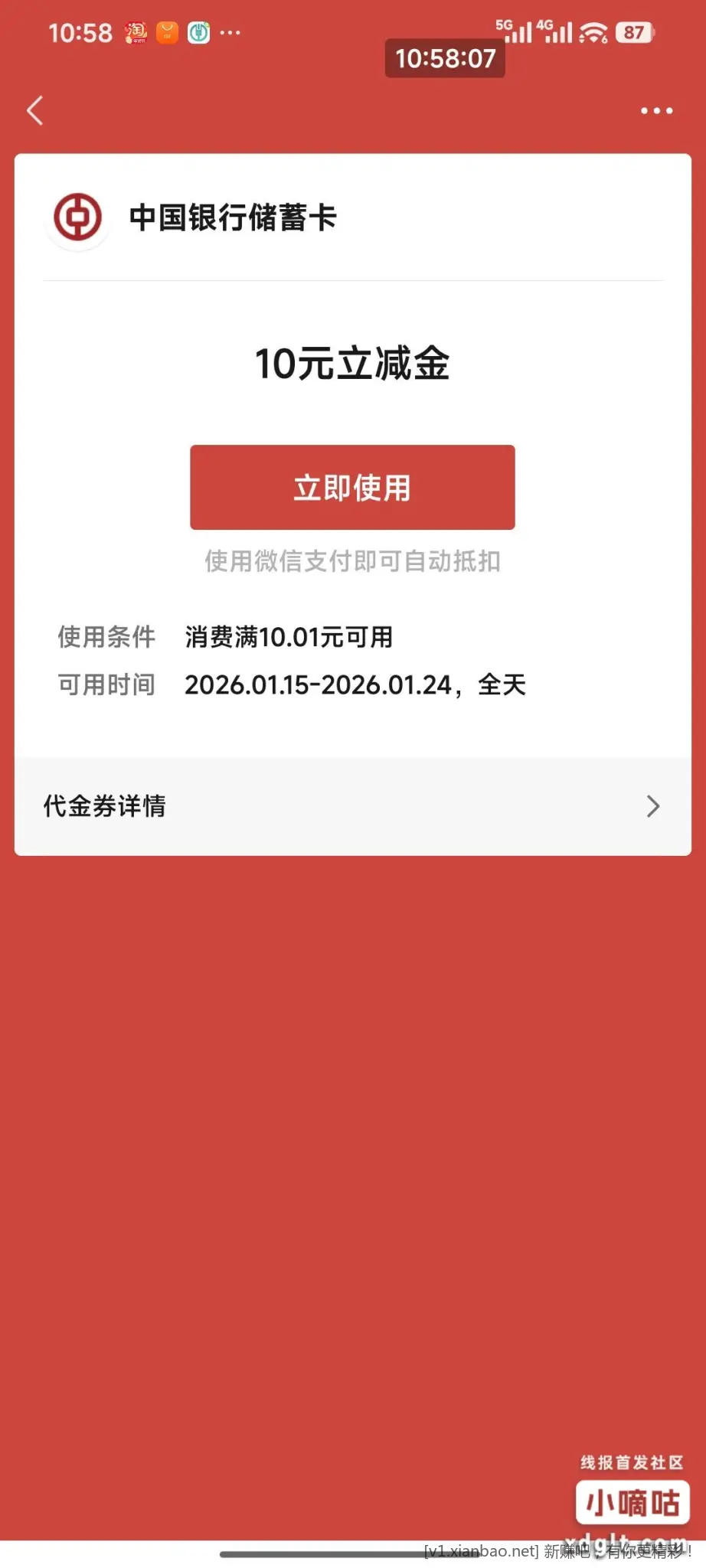 中国邮政储蓄银行,查余额抽立减金活动又可以了
