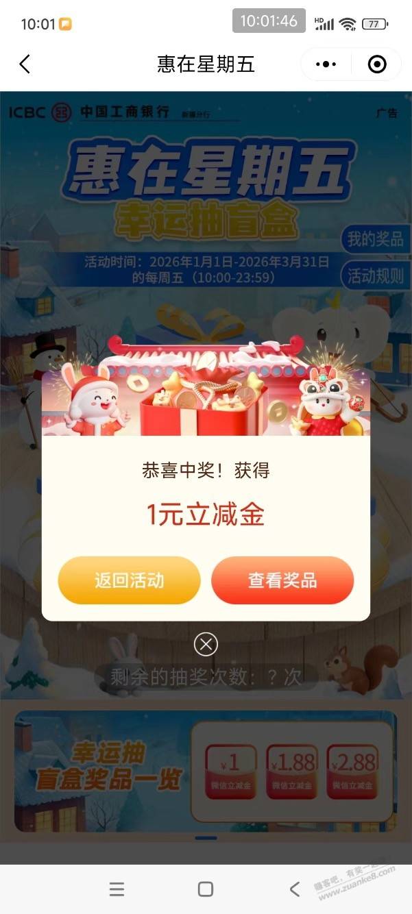 工行的立减金,非必中