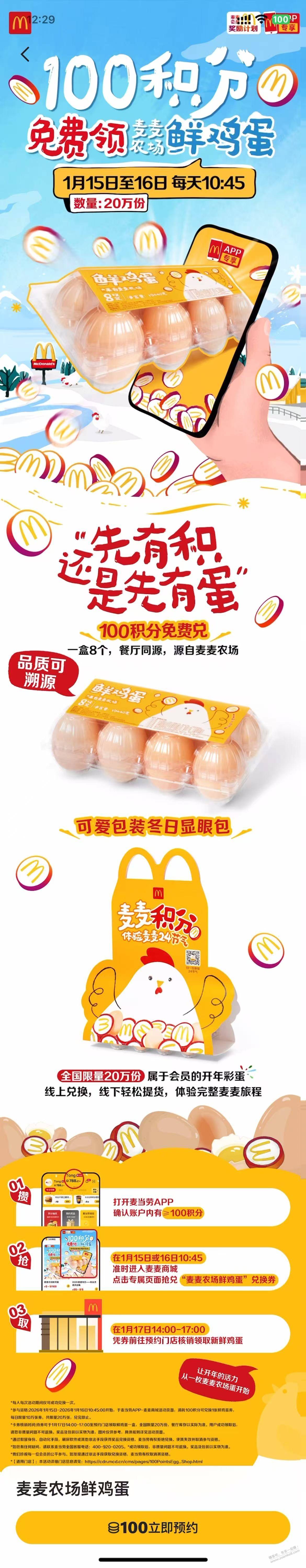 麦当劳100积分=8个鸡蛋搞定,附路径