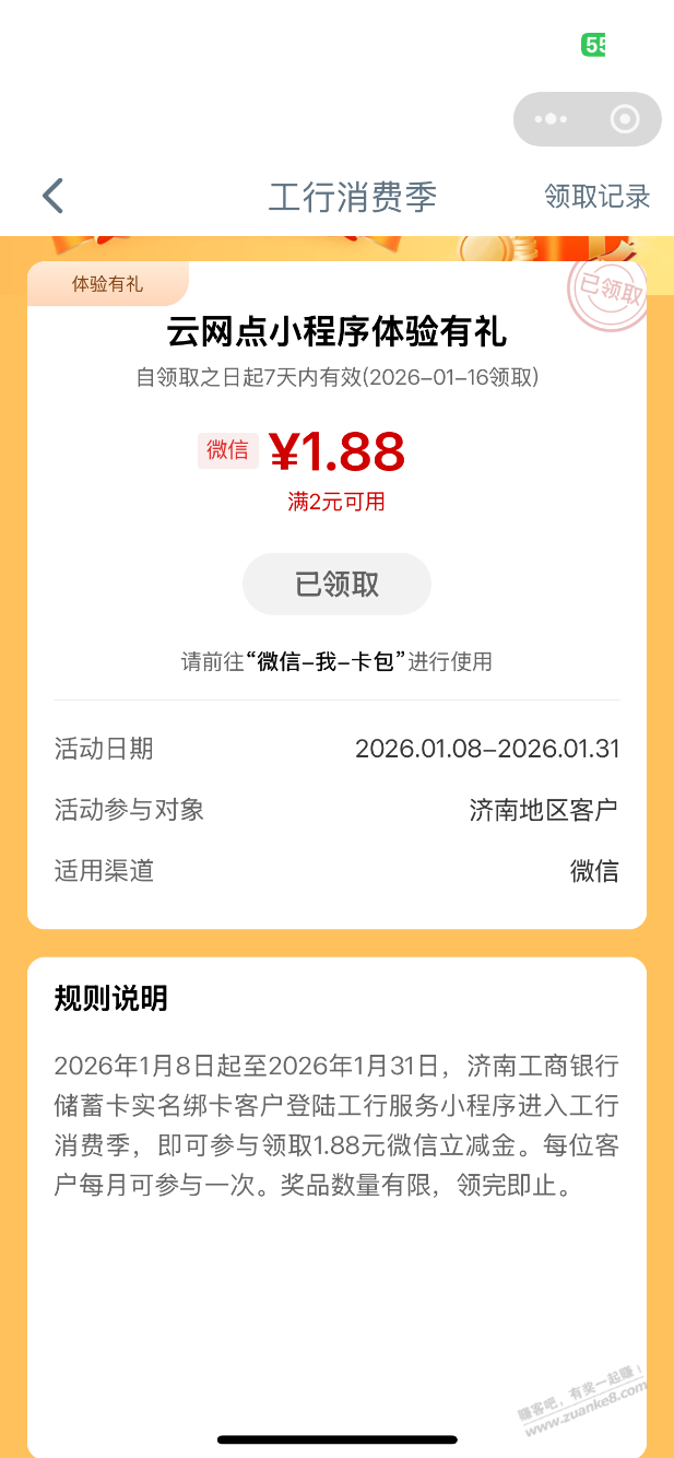 济南工行微信立减金