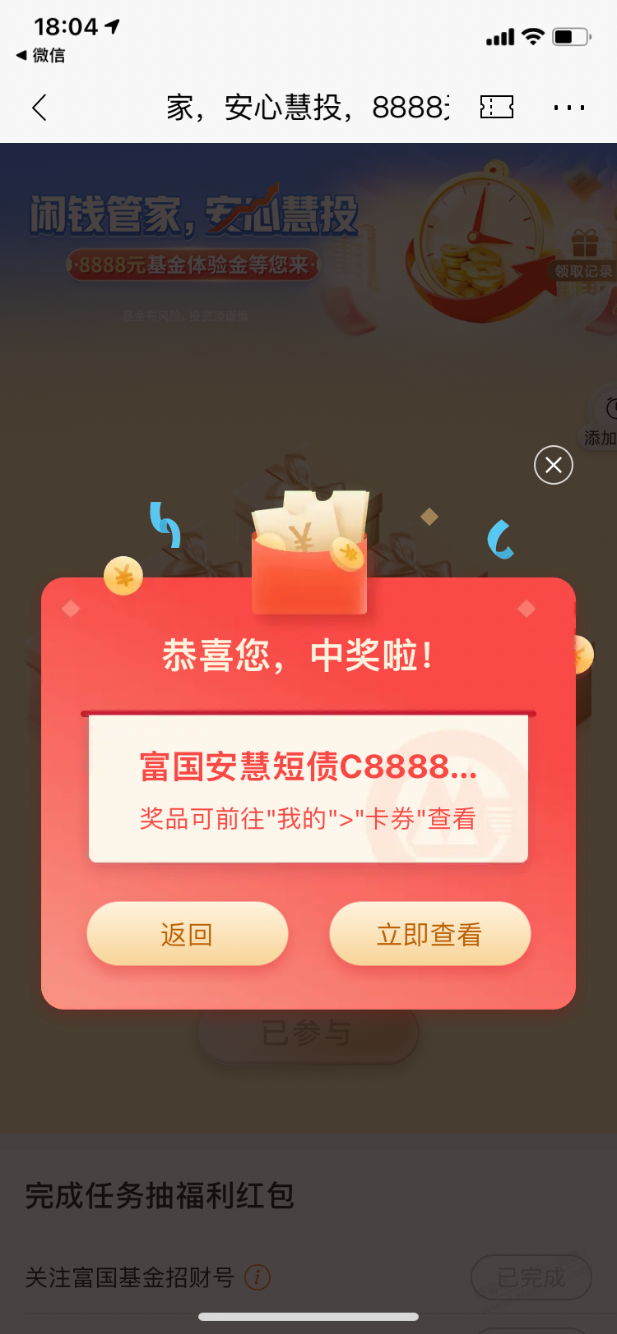 【招商银行】富国5天基金体验金8888元,黑号有~