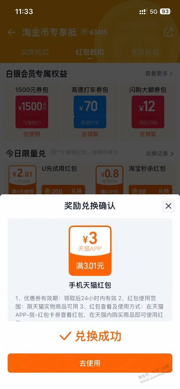 陶.宝-tao金币页面部分用户300币兑天猫3包