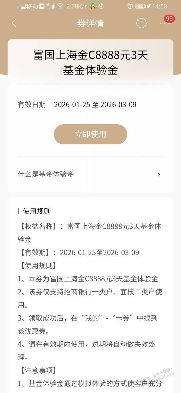 【招商银行】广发基金体验金8888元,黑号有~