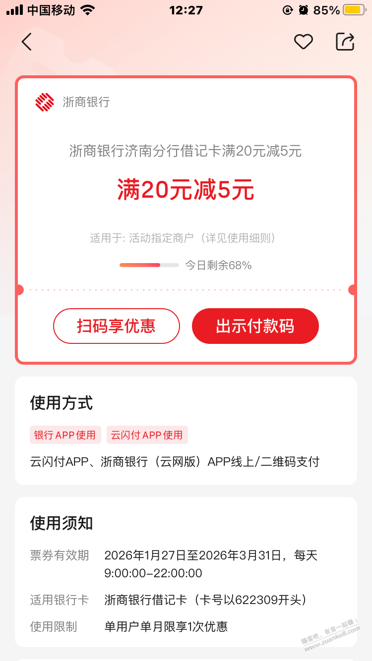 微信支付右下角摇优惠出立减金,昨天出了5快多刚才又出5块多!
