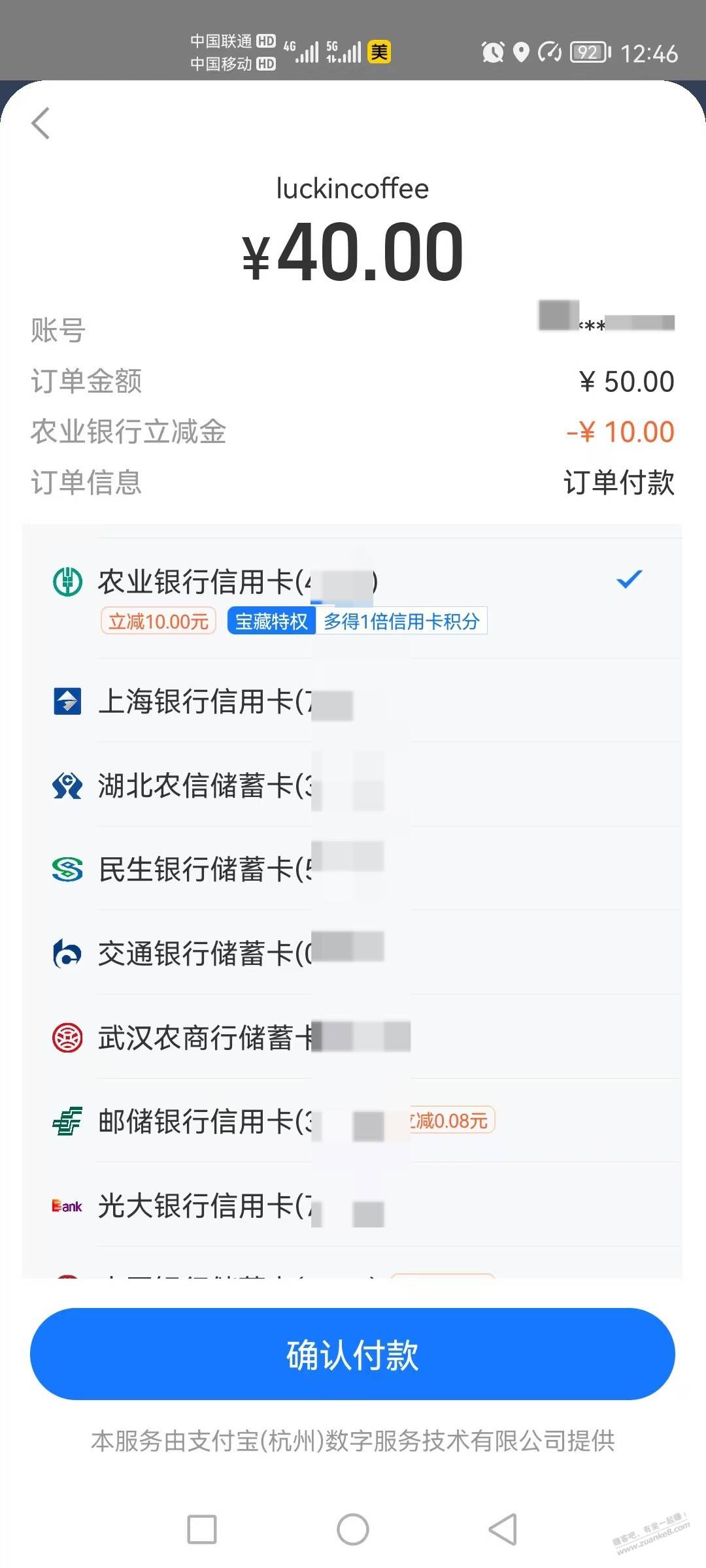 买瑞幸卡50-10农行xing/用卡还有,润5