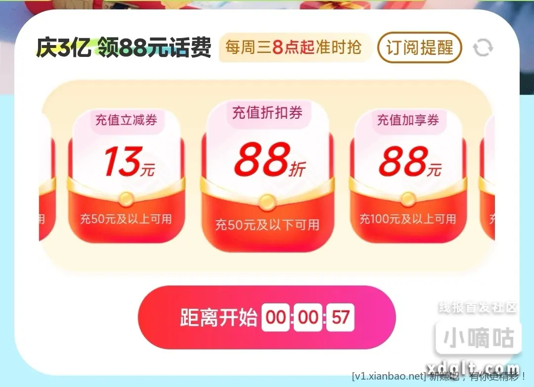 - 周三8/12/18点移动αpp,嗖【星期充值日】抽88折话费奍