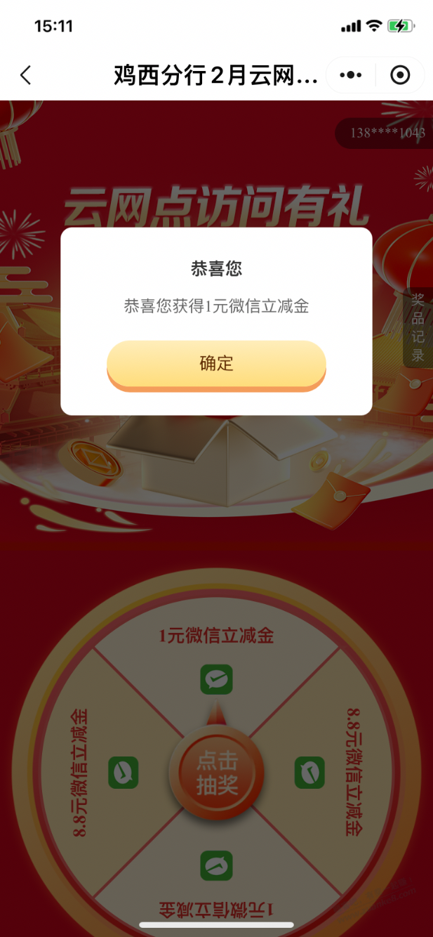 建行交易抽1998元立减金和交易15立减金,最后一天,查漏补缺!
