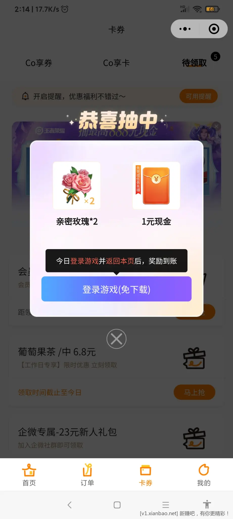 认红包,点登录后返回我的奖品手动领取