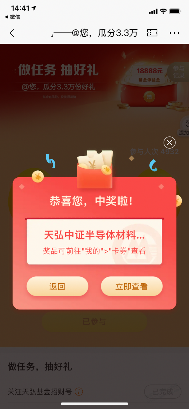【招商银行】天弘基金体验金18888元~
