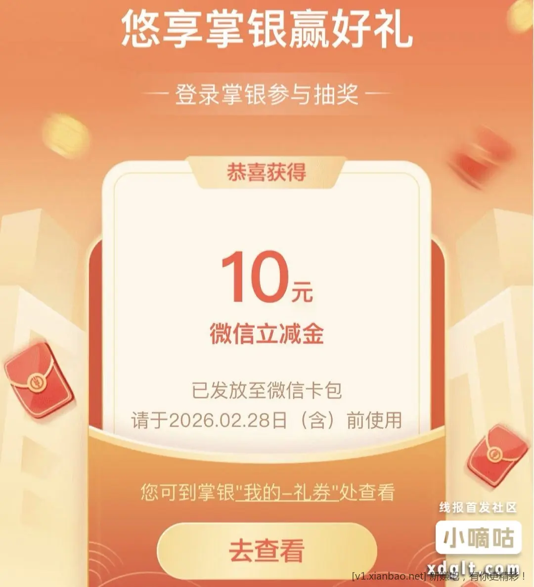 广东中行尊享有礼抽立减金