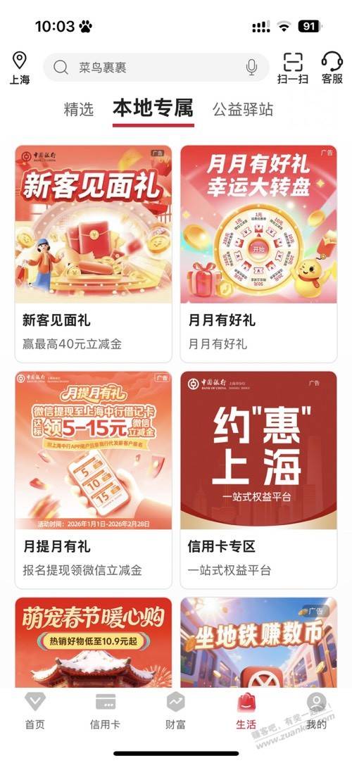 中行APP-本地专属-xing/用卡专区-新春金喜