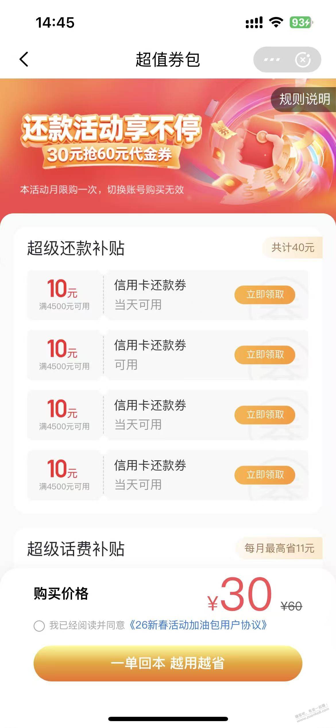 30买40的还有额外几张话费券和生活缴费券,如果有用得上的还行,门槛一般满50以内