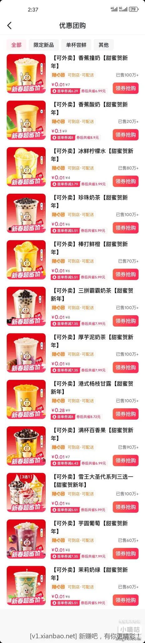 粗暴!白嫖7杯奶茶抖省省领7天15亓无门槛团购券下载抖音旗下抖省省APP-新人直接领最高15亓无门槛-首周每天领一张